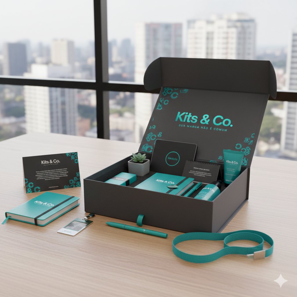 Cada kit é criado a partir da identidade, dos objetivos e do momento da sua empresa. A curadoria dos produtos, o design, a embalagem e a mensagem são totalmente personalizados para traduzir valores, cultura e posicionamento de forma autêntica e sofisticada.